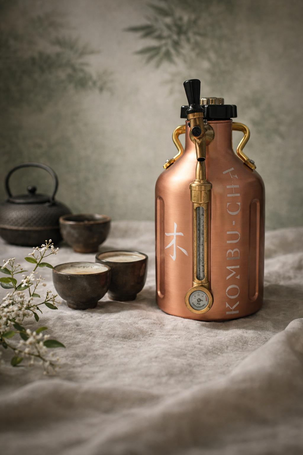KOMBU-CHA is a naturally sparkling fermented tea, rich in probiotics and antioxidants, born from a slow, artisanal fermentation process. In its pure, unrefined state, it preserves the full benefits of nature while supporting digestion, strengthening the immune system, and cultivating a lasting sense of balance and well-being.